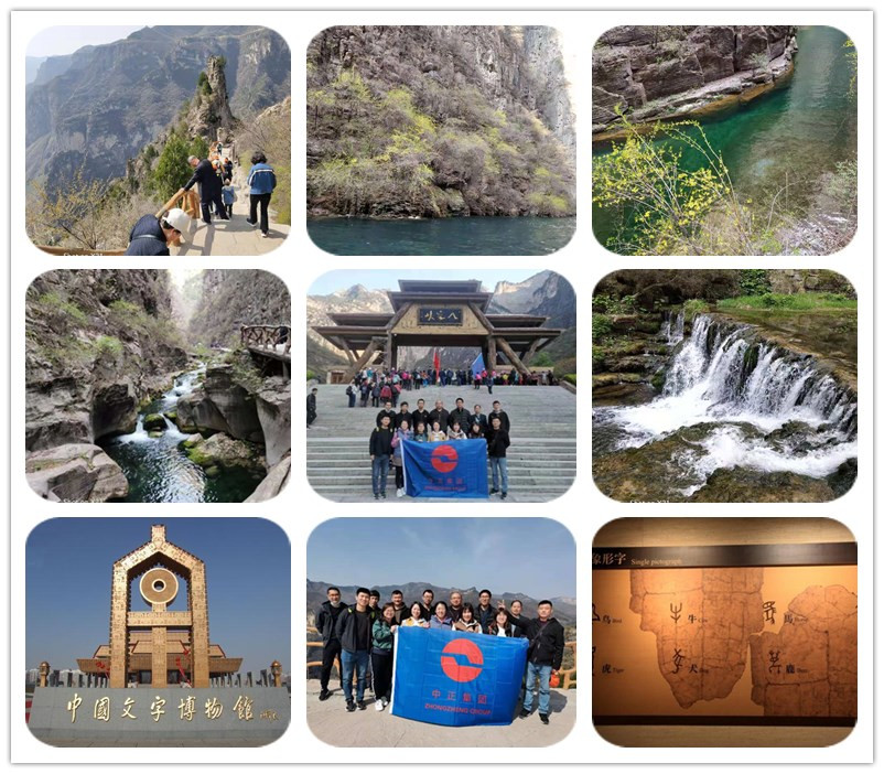 在為期三日的大峽谷旅游中,各位員工依次游覽了紅豆峽、八泉峽和青龍峽,其中當(dāng)屬八泉峽景色最為壯觀:高峽平湖,泛舟其上;峽谷幽深,山泉流淌;高空纜車,看遍群山;懸崖古棧,陡峭驚險(xiǎn),贊我祖國大好河山,處處是風(fēng)光!在行程的最后,大家共同參觀了位于河南安陽的中國文字博物館,從甲骨文到現(xiàn)代漢語,將漢字五千年發(fā)展史娓娓道來,感先人之功,品漢字之美!