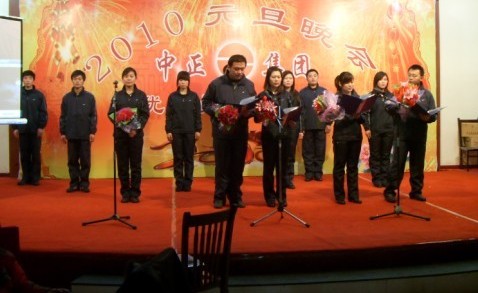 本次年會共分為三部分。第一部分是2009年總結(jié)會,于上午成功召開;第二部分是2009年優(yōu)秀員工頒獎大會,于下午三點(diǎn)隆重舉行,來自集團(tuán)及分公司的十二位優(yōu)秀員工受到表彰;第三部分是2010年元旦晚會,于下午四點(diǎn)開始,在一派喜氣洋洋中,應(yīng)邀嘉賓、集團(tuán)及各分公司領(lǐng)導(dǎo)、集團(tuán)及各分公司員工、員工家屬等共計(jì)200余人一起度過了美好而難忘的快樂時光。